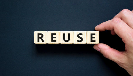 On a blue background, the surface of the white cubes with the inscription - REUSE