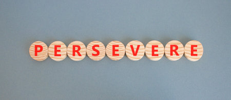 Persevere symbol. Concept word Persevere on beautiful wooden circles. Beautiful gray background. Business education support persevere concept. Copy space.