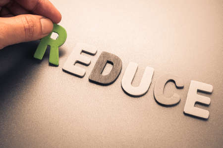 Hand arrange wood letters as Reduce Word