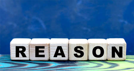 concept word reason and skills on cubes on a beautiful blue background