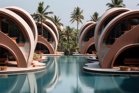 Idyllic luxury resort offers tranquil poolside relaxation in tropical paradise generated by artificial intelligence