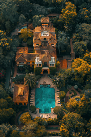Generative AI : Aerial birds eye view of Johnny Cashs house on Cinnamon Hill in Jamaica