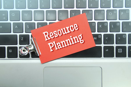 Loose scattered alphanumeric and function key covers from a laptop computer keyboard with the word Planning and digits in a close up high angle conceptual view