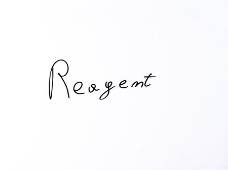 Minimal black handwritten word “reagent†on a white background. Symbol of chemistry, laboratory work and scientific reactions.