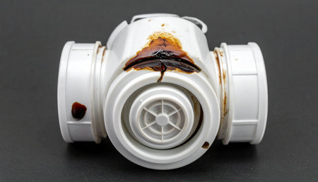 A close-up of a severely burnt and melted white plastic component, isolated on a dark background. The cracked and charred surface tells a story of a dangerous malfunction, possibly from an electrical short or overheating, highlighting themes of product defects, industrial hazards, and the need for safety inspections.