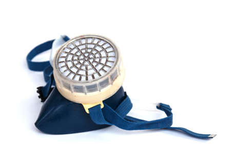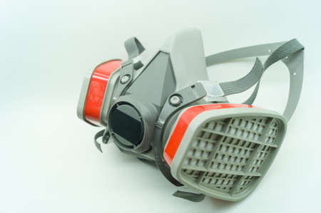 Respirator. Gas mask. Filter mask to protect the respiratory system from dust and polluted air. Protective workwear. Selective focus, Isolated on white