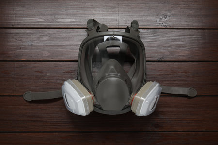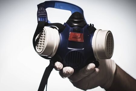 Occupational safety, special clothing, respiratory protection concept. Special means of personal respiratory protection against aerosols (dust, smoke, fog) or harmful gases. Selective focus.