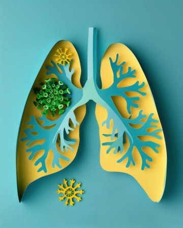Digital lungs illustration with glowing airways and colorful particles
