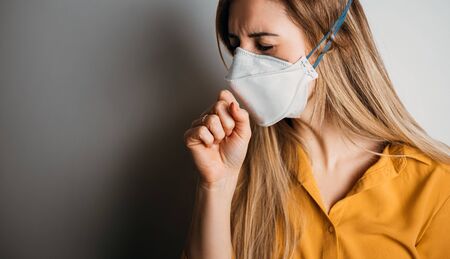 Virus mask ill woman coughing