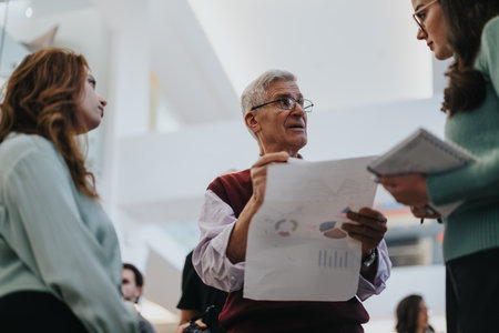 Business meeting with engaged professionals discussing ideas in a modern office setting during daytime