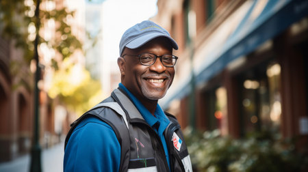Candid photo of a senior patient from a minority background wearing a hat and glasses and talking with people. Generative Ai