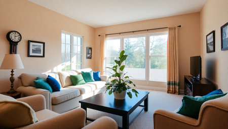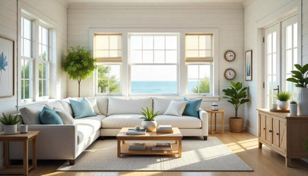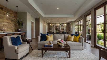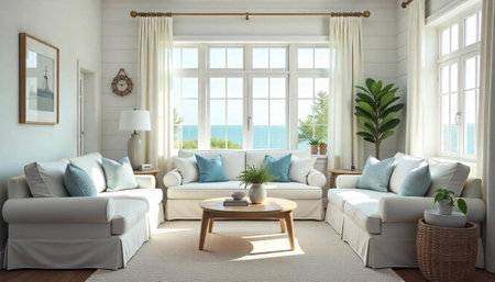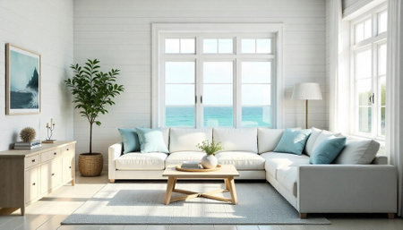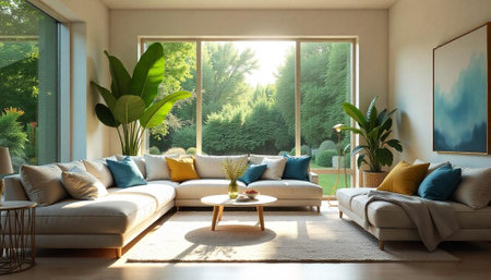 A modern living room filled with natural light, featuring soft textures, comfortable furniture, and stylish decor that creates a warm and inviting atmosphere.