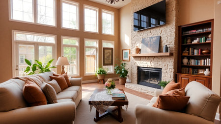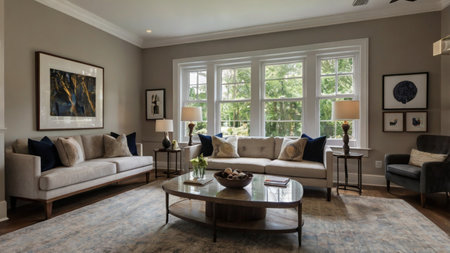 Luxury living room interior with sofa and coffee table. Northwest, USA
