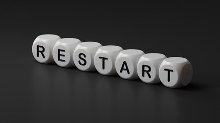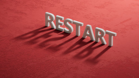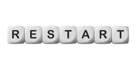 Restart word, inscription. Concept of new start and reset.