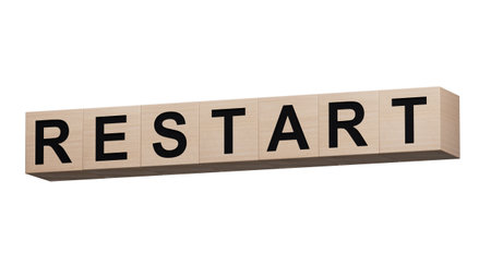 The word Restart made from wooden cubes on blue background. Conceptual photo