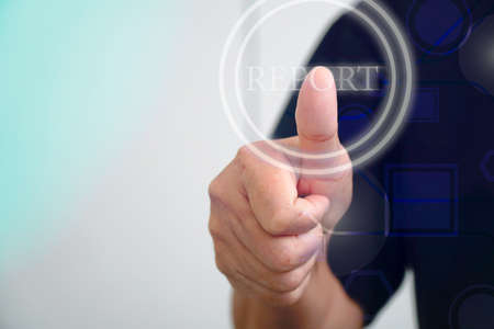 woman touching report sign on virtual screen.