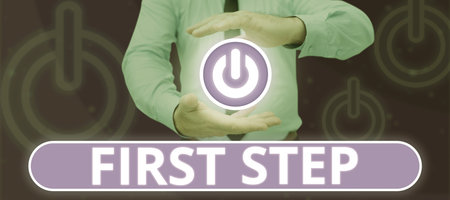 Writing displaying text First Step. Concept meaning Pertaining to the start of a certain process or beginning