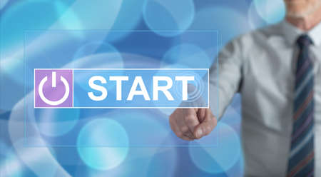 Man touching a start concept on a touch screen with his finger