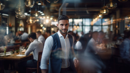 Happy manager in dining area dedicated to outstanding hospitality