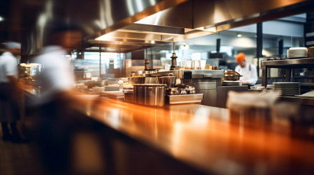 Generative AI, busy chefs working on the restaurant kitchen, blurred background