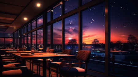 A modern restaurant interior exuding sophistication, inviting guests to savor exquisite dining.