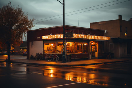 Cozy Diner Interior Decorated With Warm Lighting in an Urban Setting During Evening Hours