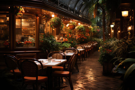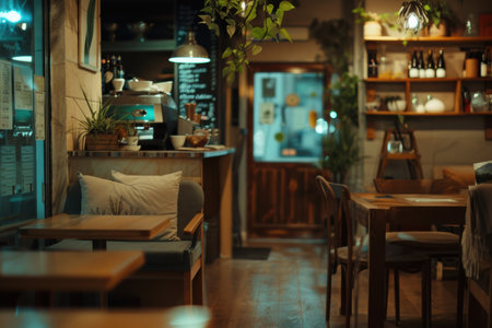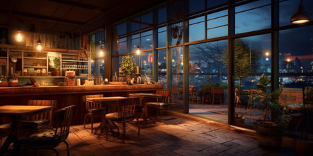 Interior of a cafe bar in the evening : Generative AI
