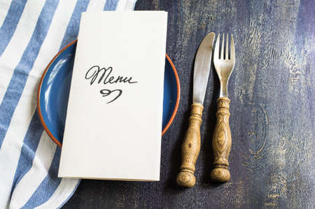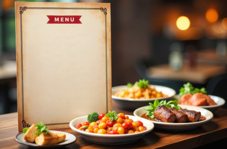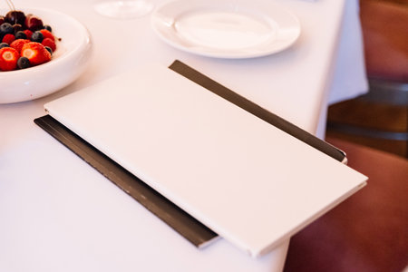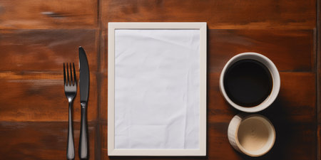 Menu on the table in a cafe. Space for your text. View from above. Generative AI