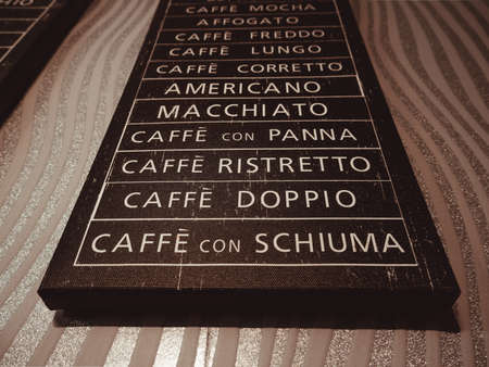 Various coffees signs in the cafe