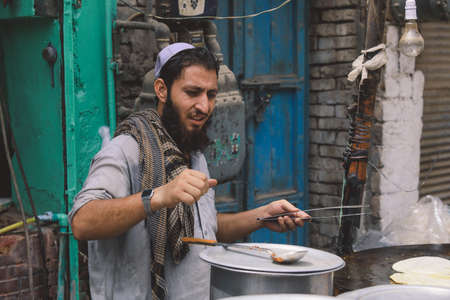 Peshawar, Pakistan - July 21, 2021: Portrait of the Smiling Pakistan Seller Man in the Peshawar City Central Market