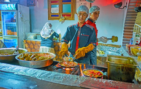 Giza, Egypt - November 02, 2021: Street Arabic Food with Eggs and Falafel in the city Center of Egyptian Giza