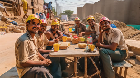 Unidentified indian workers on the construction site in Kolkata.