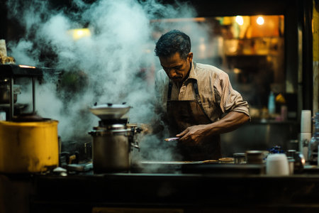Indian vendor preparing fresh food in a street market setting