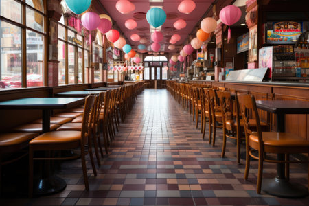 fast-food restaurant with a vintage vibe, featuring old-fashioned decor and retro signs, created with generative ai