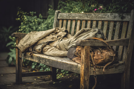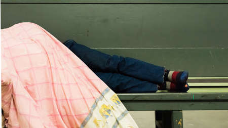homeless man lying at the bench
