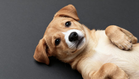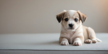 AI Generated. puppy sitting on a gray surface looking at the camera