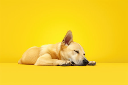 A charming puppy peacefully sleeping under a yellow blanket, surrounded by soft fabric. The scene captures the essence of comfort and tranquility in a cozy home environment.