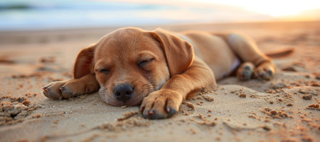 Adorable puppy lying on the ground at sunset, enjoying the warm glow. Ai generated