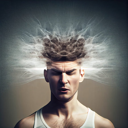 A person's thoughts and emotions are like a jumbled mess, representing the chaos of anxiety. Generative AI