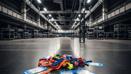 Spacious auditorium featuring neatly arranged empty chairs set up for a forthcoming event, illuminated by bright stage lights in a modern venue.