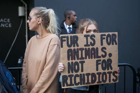 LONDON, ENGLAND - September 15, 2017Anti fur protest during the London Fashion Week.