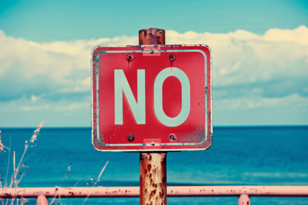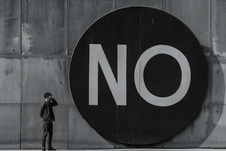 Hand holding a red no sign symbolizing refusal or disagreement in a neutral setting