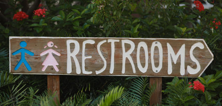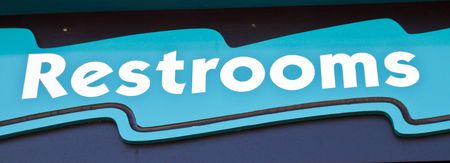 Sign indicating where restrooms are located