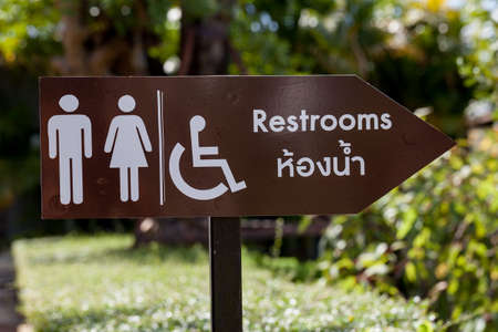 restroom sign in park, thailand.