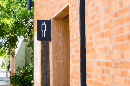 Men public toilet sign In the garden thailand.