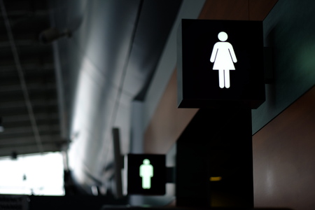 entrance to the male and female toilet. Sign in airport.