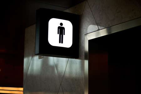 Men toilet sign with white cement background in airport