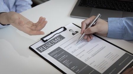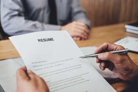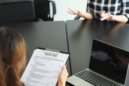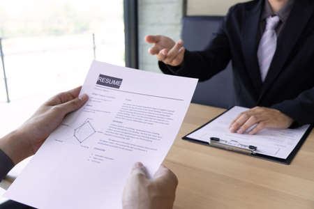 Employer or HR leader is interviewing participants, applying for a company employee, and having read the proficiency test resume to recruit qualified employees, Selection of job applicants.