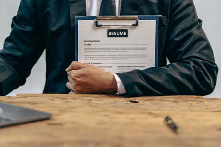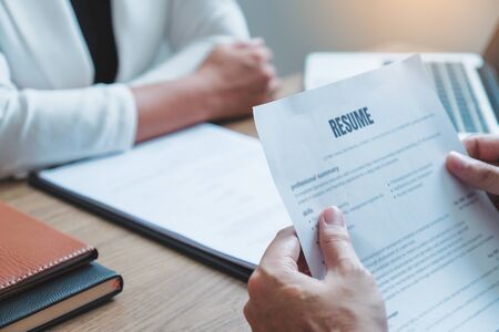 Resume concept. Executives or interview manager candidates. Talk about your past work experience and talents in the position.