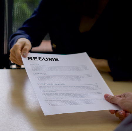 Person submitting resume to interview for a job with a company, Person attending a job interview with a manager to be recruited to the company for the position applied for. Job application concept.
